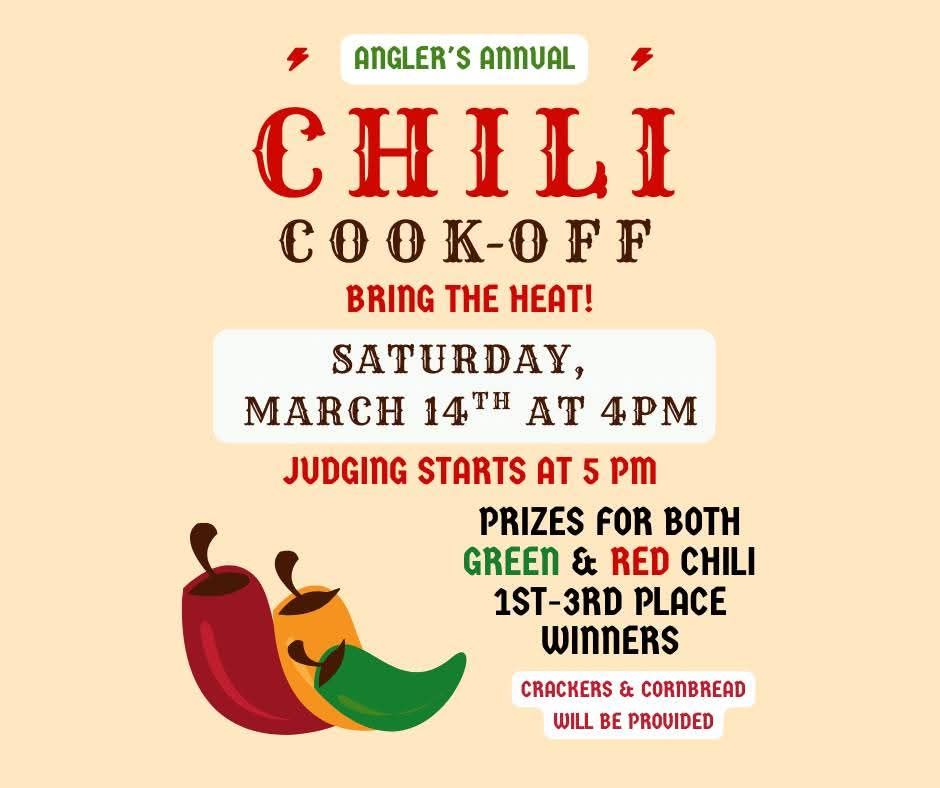 Angler’s Annual Chilli Cookoff! March 14th @ 4pm.