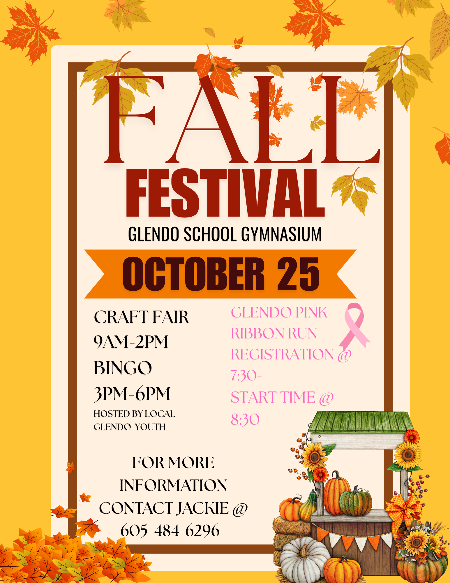 Glendo Craft Fair – October 25th 9am-2pm- Pink Ribbon Run- Registration @ 7:30- Run/Walk @ 8:30am