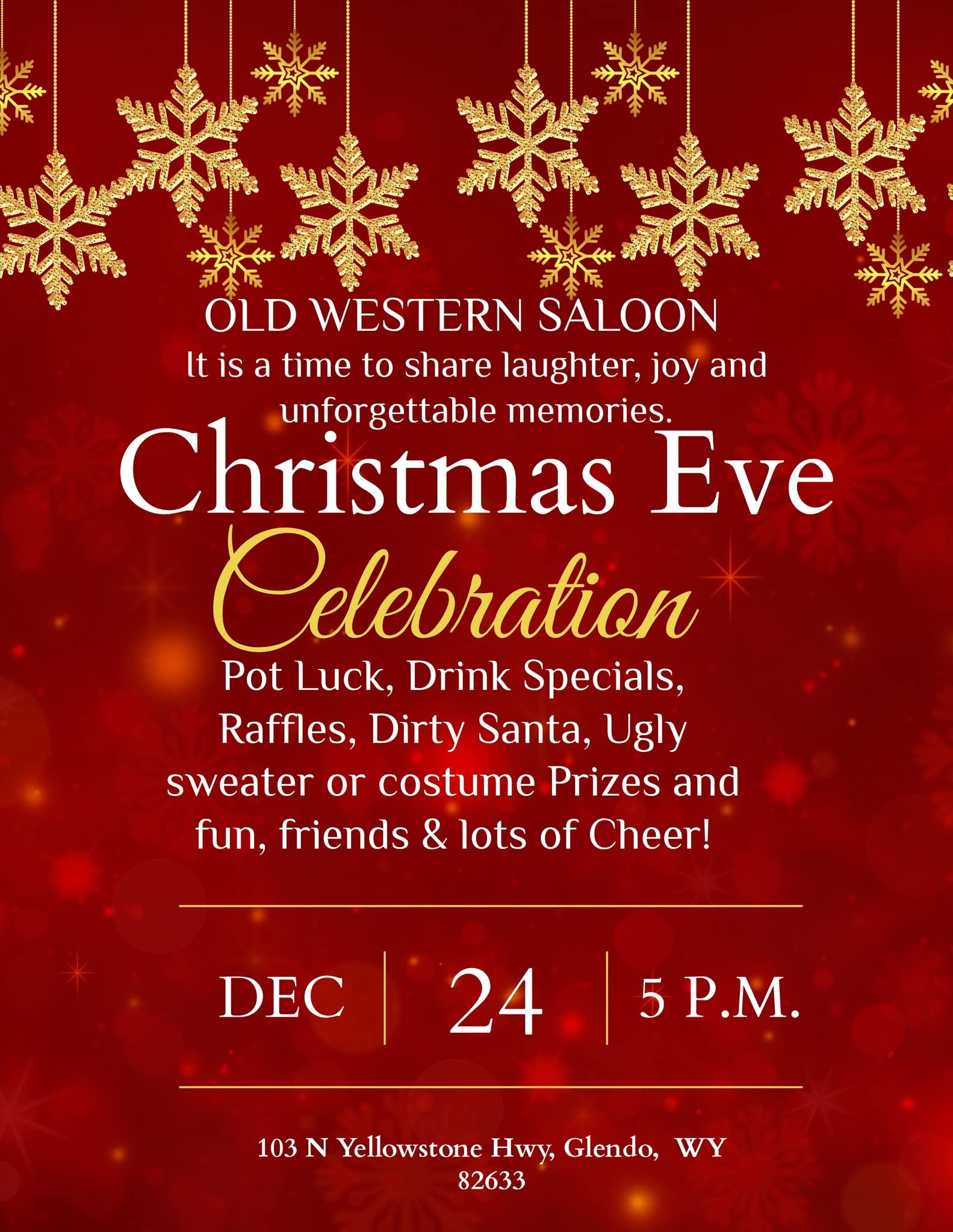 Old Western Saloon Christmas Eve Party- December 24th @ 5pm