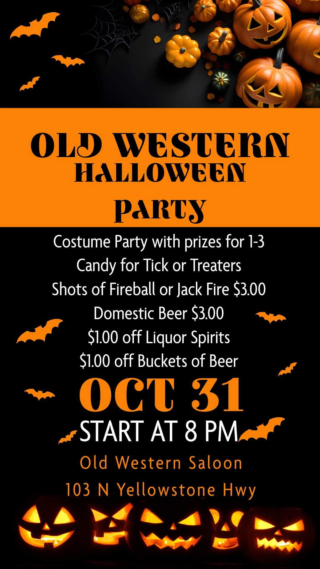 Old Western Saloon Halloween Party- October 31st @ 8pm